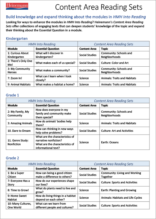 Let's help every student become confident, engaged, and skilled readers. Designed to address today's most pressing literacy challenges, Content Area Reading Sets connect reading to core science and social studies themes. With four thematic collections for grades K-5, students build knowledge across key content areas while strengthening essential literacy skills.