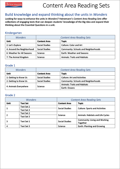 Content Area Reading Sets easily fit alongside the core programs you're already using. It works with widely used literacy programs like Wonders and Into Reading, providing thematic connections and deeper engagement with subject matter content.