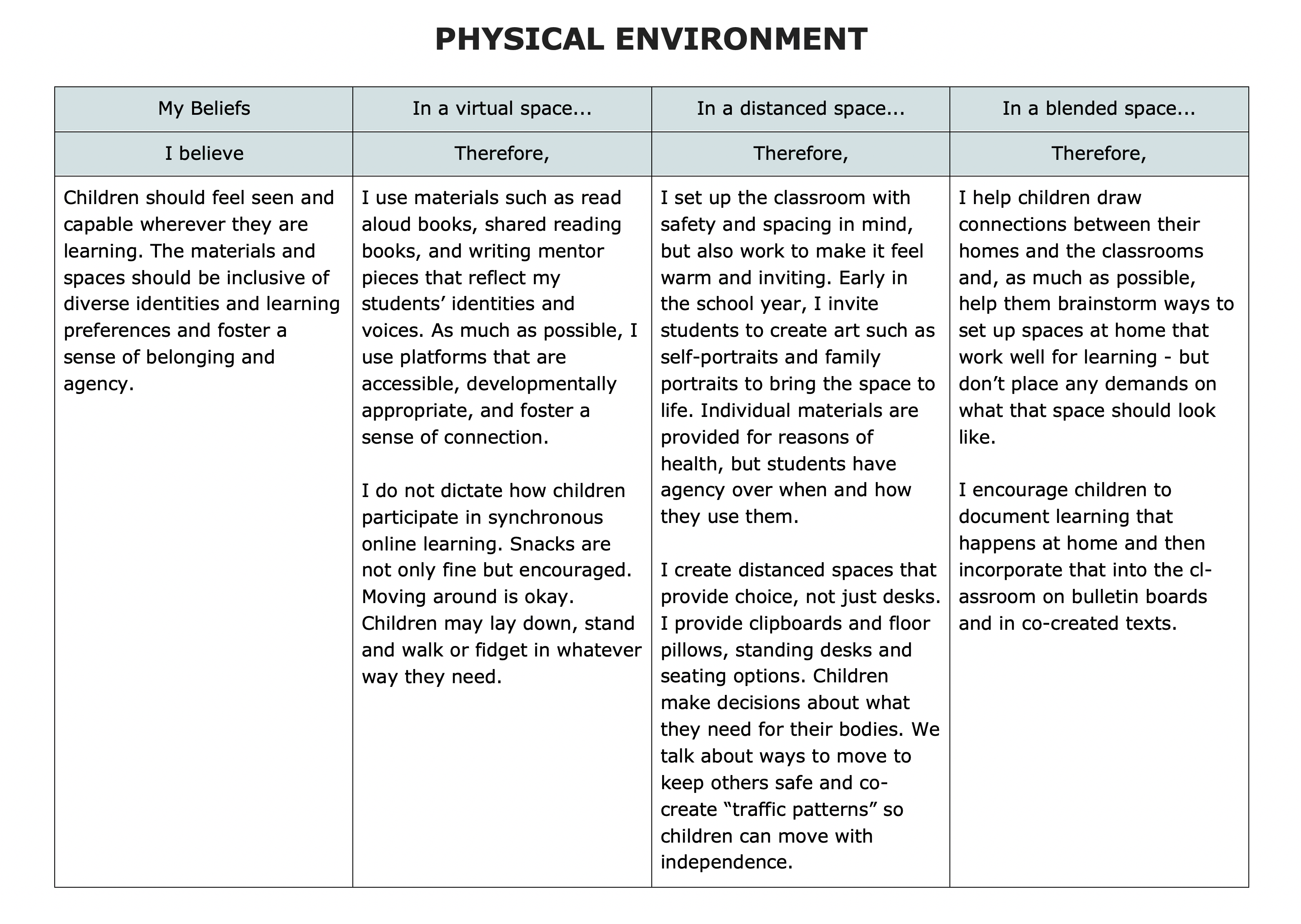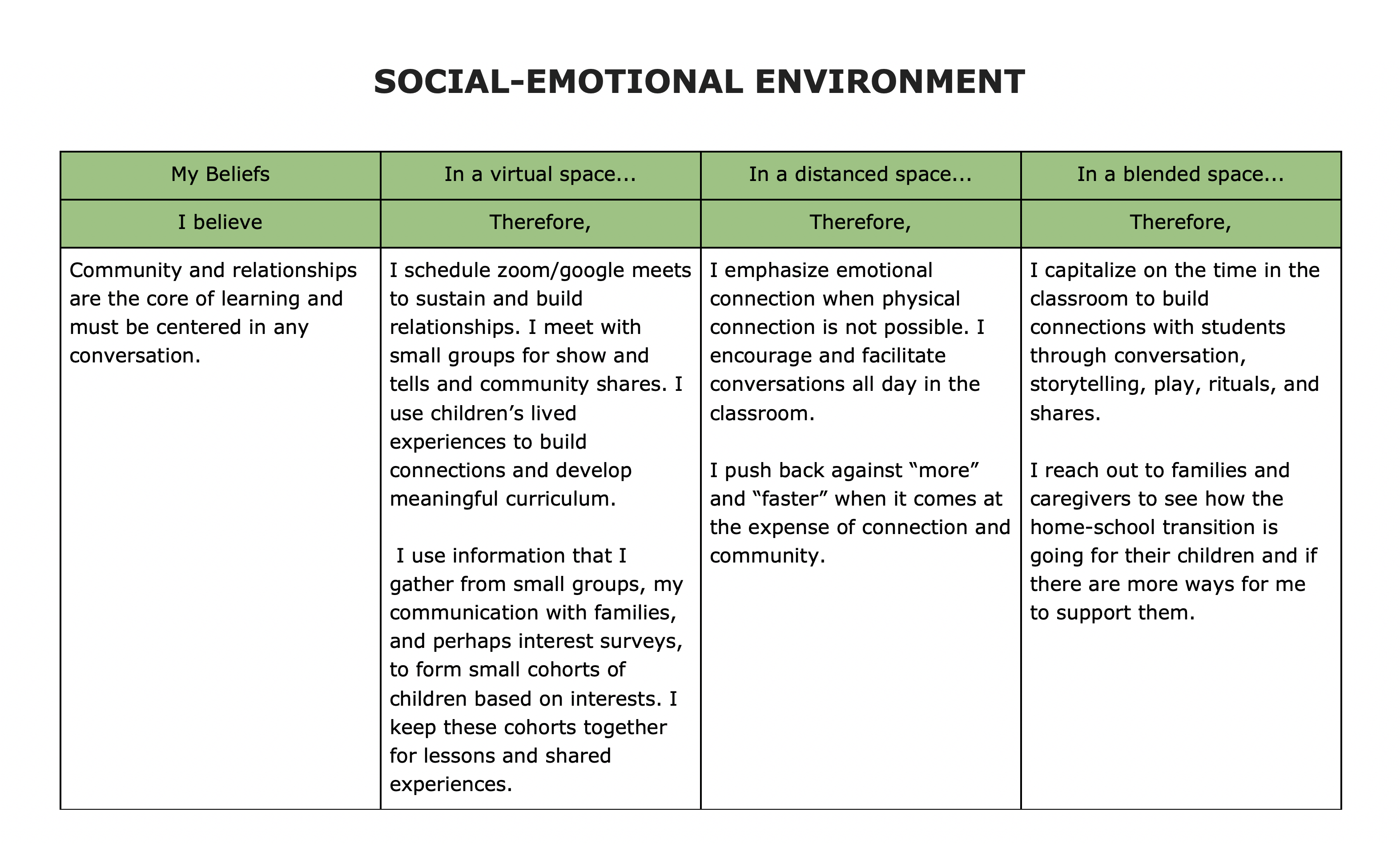 Here’s how some of those same beliefs would manifest into actions and impact our planning for the start of this, very, very different, school year: