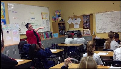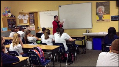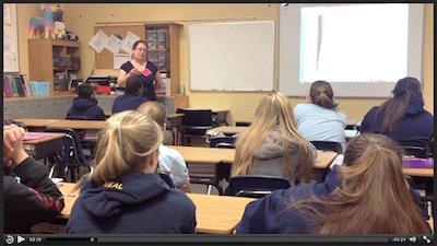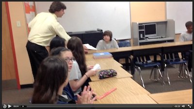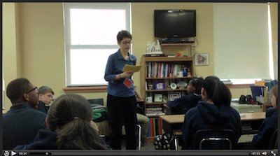 Stream the video of Suzanne reading the Eating Grapes PoW in a 7th grade class. You might notice Suzanne doesn't repeat the students' responses.