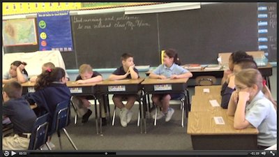 Stream the video of Max presenting the Arm-Wrestling Contest PoW to a different 3rd grade class. He is using the "What Do You Hear?" activity from p. 46 of Powerful Problem Solving.