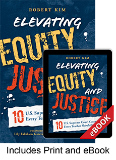 Robert Kim, an education policy expert and former civil rights lawyer, has spent much of the last two decades focused on the rights of students, as well as the legal rights and obligations of schools and educators. In Elevating Equity and Justice, Bob takes a deep dive into ten cases of historical impact, providing background and information on each as well as an explanation of why it is important to know them. He brings the source material to life without overwhelming you with “legalese” and dos and don’ts.