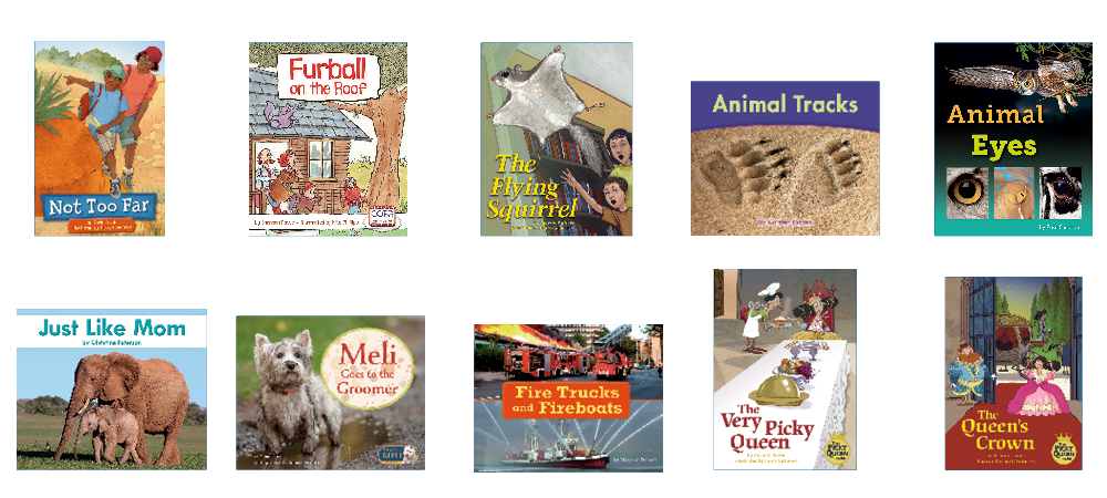 • 10 original titles (6 copies of each title) at text level G on the F&P Text Level Gradient™: Not Too Far; Furball on the Roof; The Flying Squirrel; Animal Tracks; Animal Eyes; Just Like Mom; Meli Goes to the Groomer; Fire Trucks and Fireboats; The Very Picky Queen; The Queen's Crown