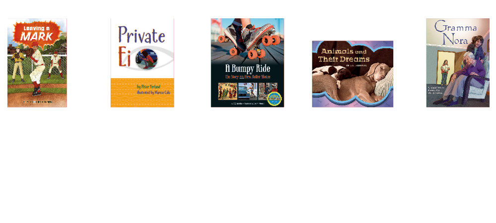 • 5 original titles (6 copies of each title) at text level Q on the F&P Text Level Gradient™: Leaving a Mark; Private Ei; A Bumpy Ride: The Story of the First Roller Skates; Animals and Their Dreams; Gramma Nora