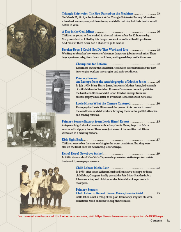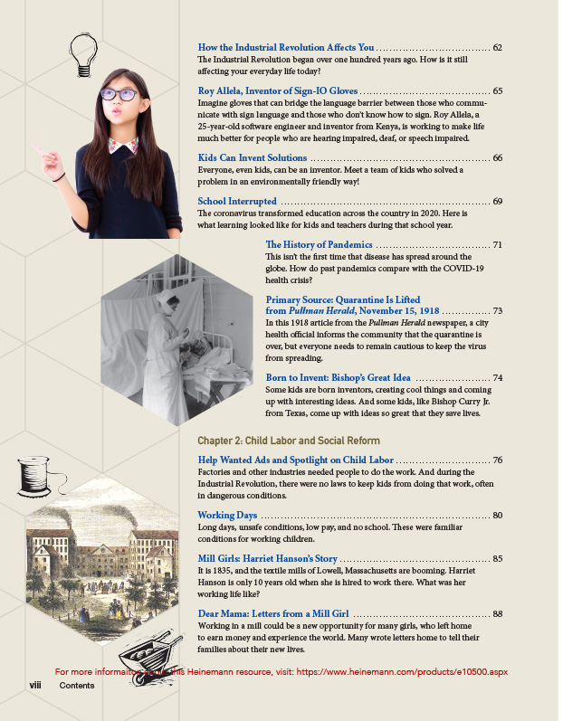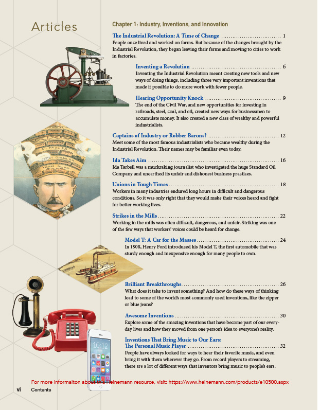 Kids need engaging texts and resources they can sink their teeth into, and they need and deserve to hear their stories told in history texts. Industrial Age and Immigration (1880–1940) highlights multiple perspectives and diverse voices of this historical time period. The last section of this resource, from the 1960s on, includes articles illustrating present-day perspectives, events, and issues surrounding immigration and innovation.