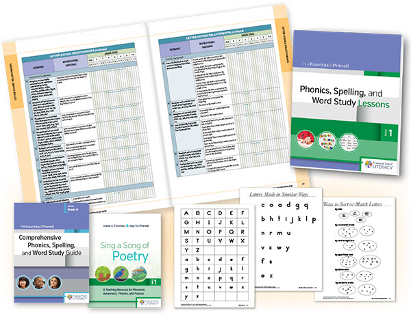 - Organization by nine areas of learning—Early Literacy Concepts, Phonological Awareness, Letter Knowledge, Letter-Sound Relationships, Spelling Patterns, High-Frequency Words, Word Meaning/Vocabulary, Word Structure, and Word-Solving Actions
