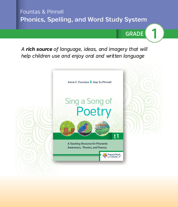 - Specific connections to Sing a Song of Poetry, to Words That Sing: 100 Poetry Charts for Shared Reading, and to Fountas & Pinnell Classroom™ Interactive Read-Aloud Collection and Shared Reading Collection titles as mentor texts and examples for generalizing and applying principles