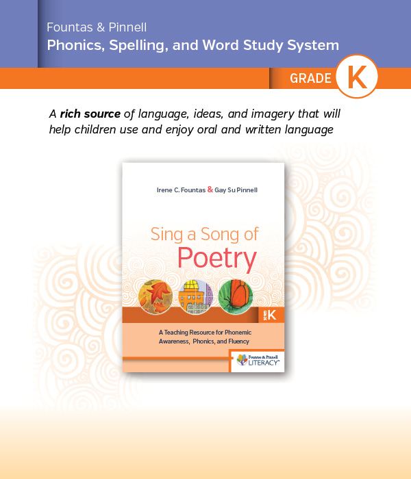 - Specific connections to Sing a Song of Poetry, to Words That Sing: 100 Poetry Charts for Shared Reading, and to Fountas & Pinnell Classroom™ Interactive Read-Aloud Collection and Shared Reading Collection titles as mentor texts and examples for generalizing and applying principles