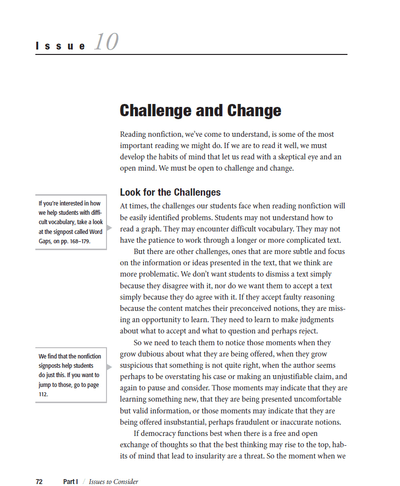 We all know the value of helping students define nonfiction and understand its text structures. Reading Nonfiction goes the next crucial step—helping kids challenge the claims of nonfiction authors, be challenged by them, and skillfully and rigorously make up their mind about purported truths.