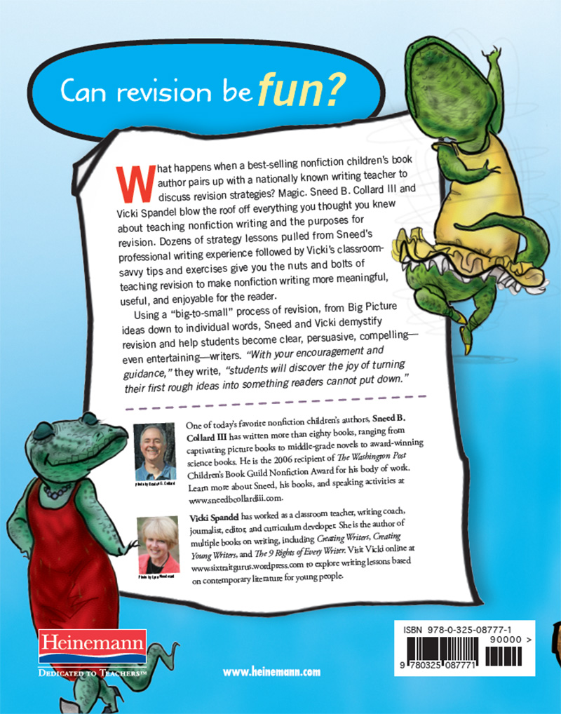 Sneed B. Collard III and Vicki Spandel blow the roof off everything you thought you knew about teaching nonfiction writing and the purposes for revision.  Dozens of strategy lessons pulled from Sneed’s professional writing experience followed by Vicki’s classroom-savvy tips and exercises give you the nuts and bolts of teaching revision to make nonfiction writing more meaningful, useful, and enjoyable for the reader.