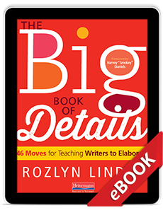 Have you ever told a writer to add more details, only to see their writing get longer not better? That’s why Roz Linder wrote The Big Book of Details. “To help our students use details and elaborate effectively,” she writes, “we need to find out what they want their writing to do, and then show them explicit moves to make it happen.”