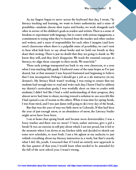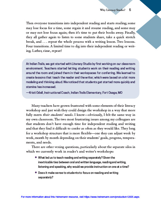 The Literacy Studio. Tools to re-think your workshop structure and strategically plan for integrating reading and writing. Isn’t it time?