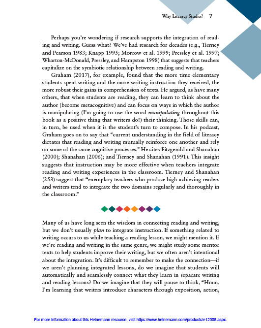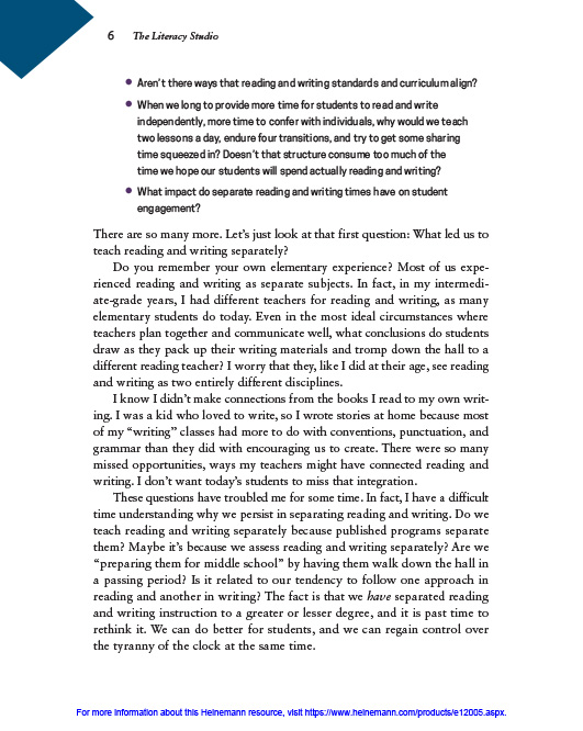 • Sample lessons that integrate concepts from reading and writing
