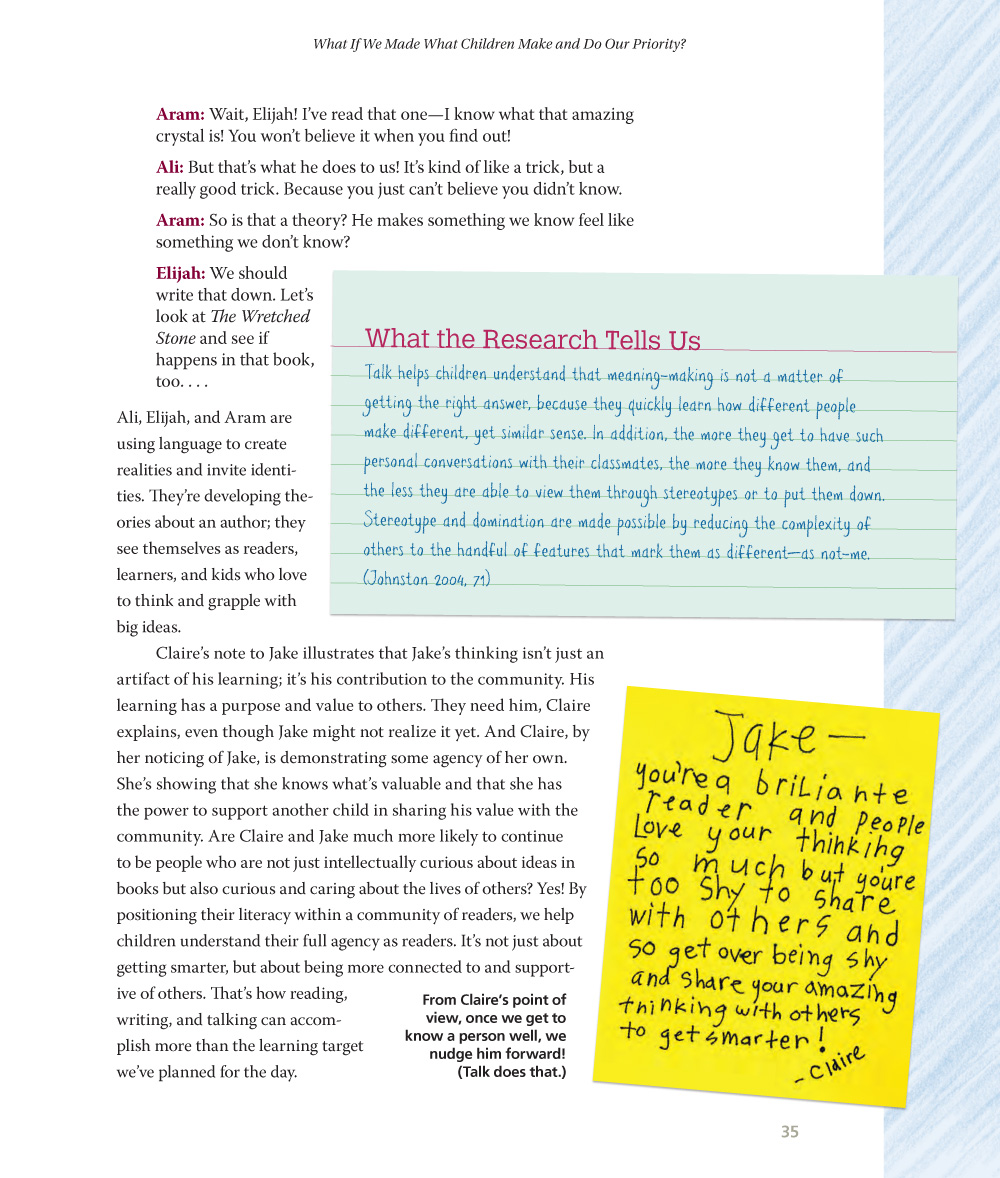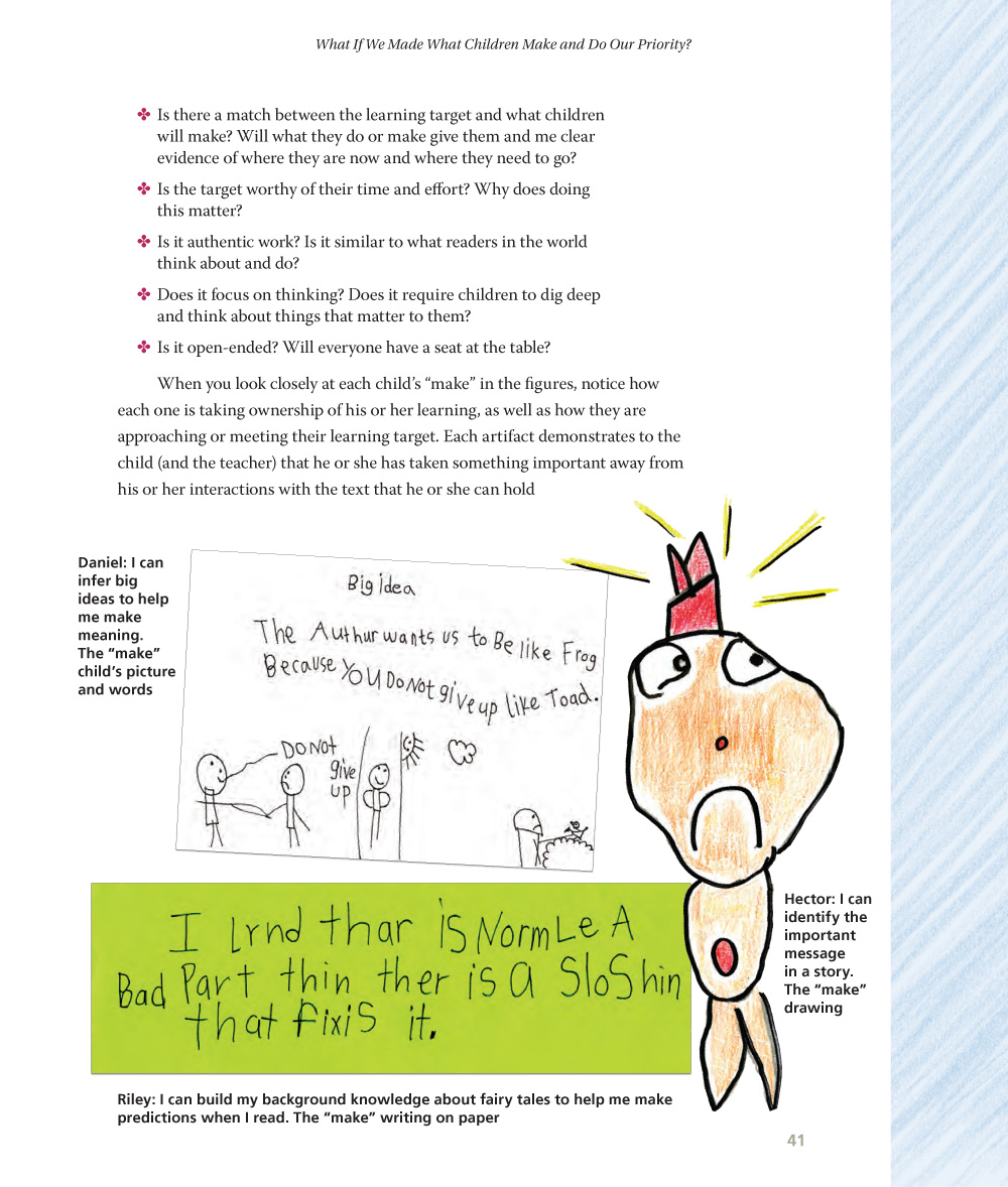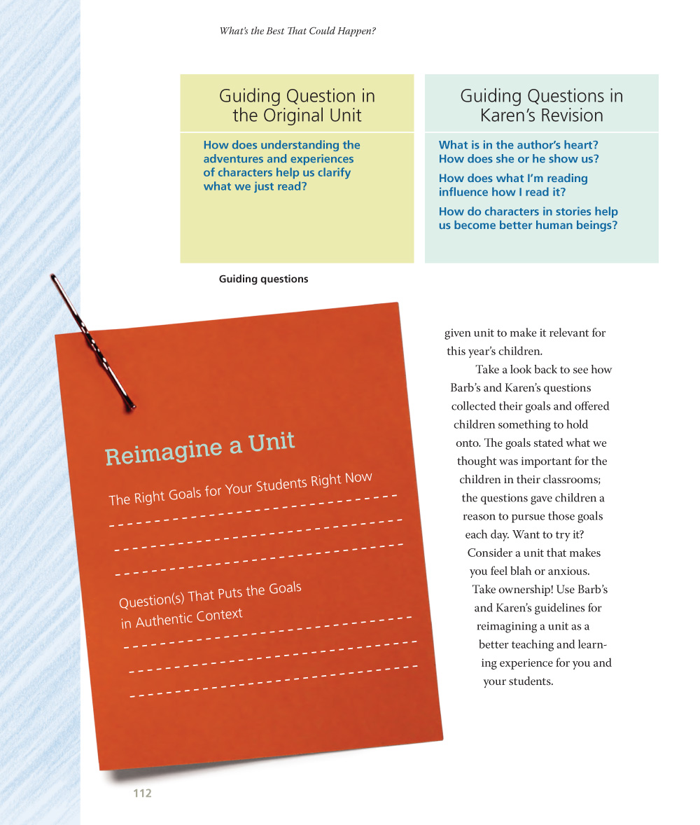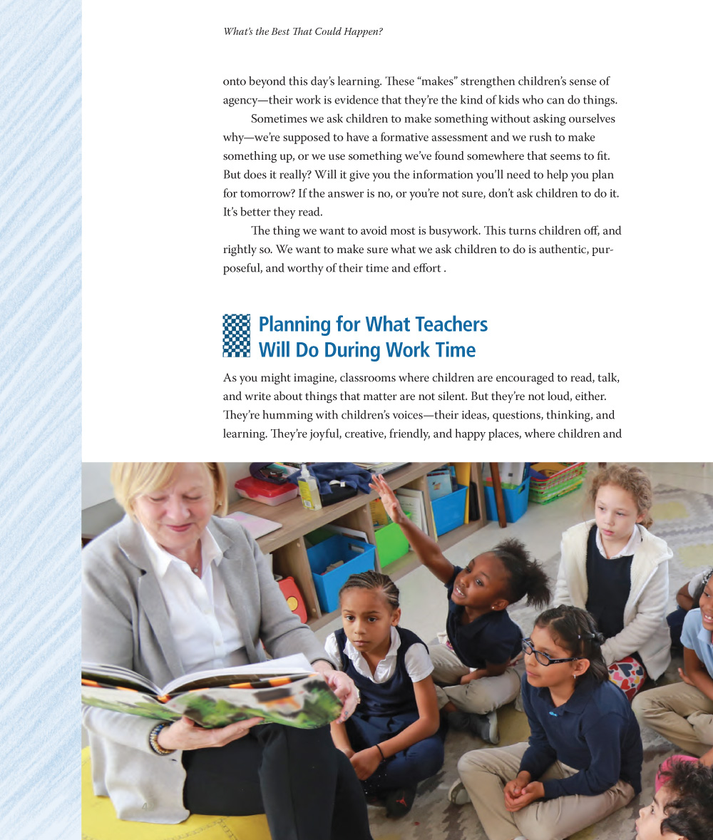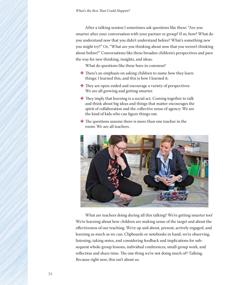 We all have difficult moments in our teaching, and without a question to drive us forward, we can get stuck. But that difficult moment might be the question we need to ask ourselves. Questions can bring a positive attention, creating a presence in the moment. When I ask children, “Are you the kind of kid who...?”, I’m inviting them to imagine a new possibility for themselves, one in which they have more power than they did before. I want those new possibilities for teachers, too. Are you the kind of teacher who is ready to try something new, something that will make your students stronger, more joyful readers and bring you greater joy in your work? I think you are.